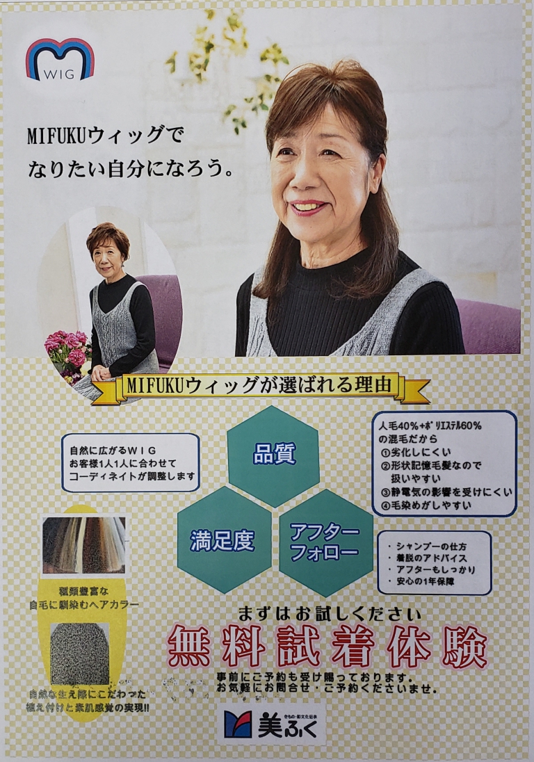 MIFUKUのおしゃれウィッグ無料試着体験会案内のご案内です。